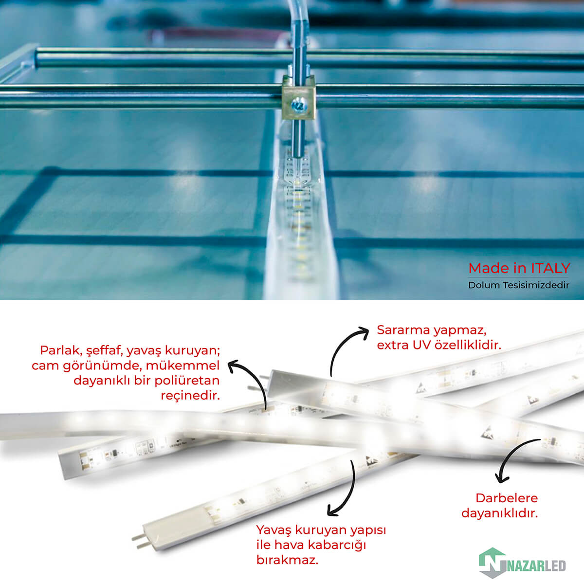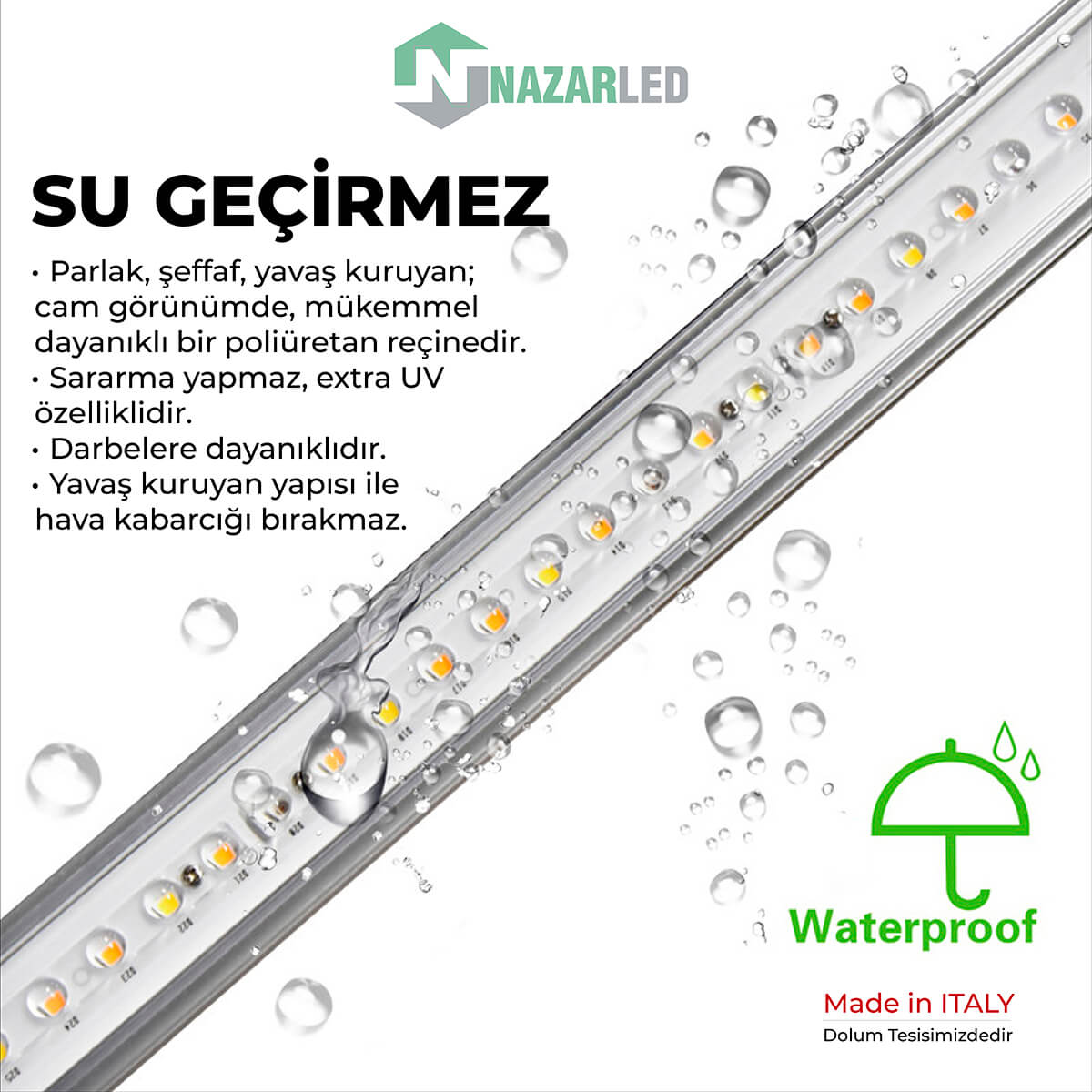 LED Çubuk ve Şerit Kaplamaları: LED şeritlerin dış etkenlere karşı korunmasını sağlar, suya ve darbelere dayanıklı hale getirir.